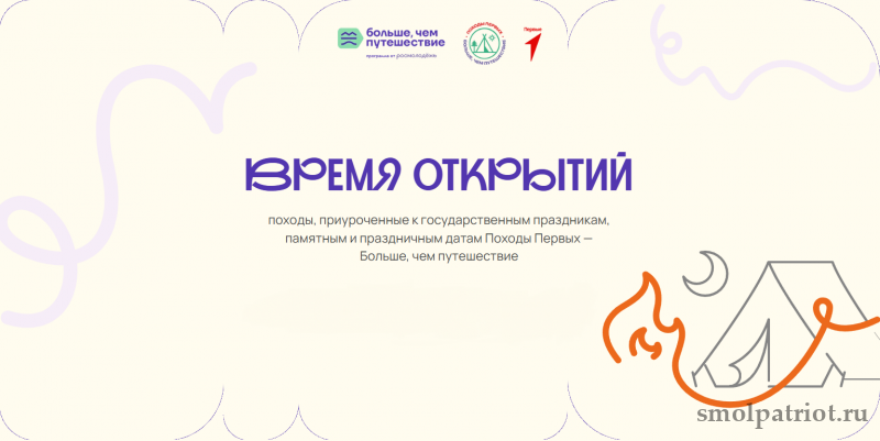 В рамках проекта запланирована серия походов «Время открытий» участники смогут отправиться в походы разного уровня сложности: от простых туристских прогулок до многодневных экспедиций по самым живописным и значимым местам страны. Мероприятия приурочены к государственным праздникам и памятным датам, что позволит молодежи не только активно отдыхать, но и глубже узнать культурное наследие России.